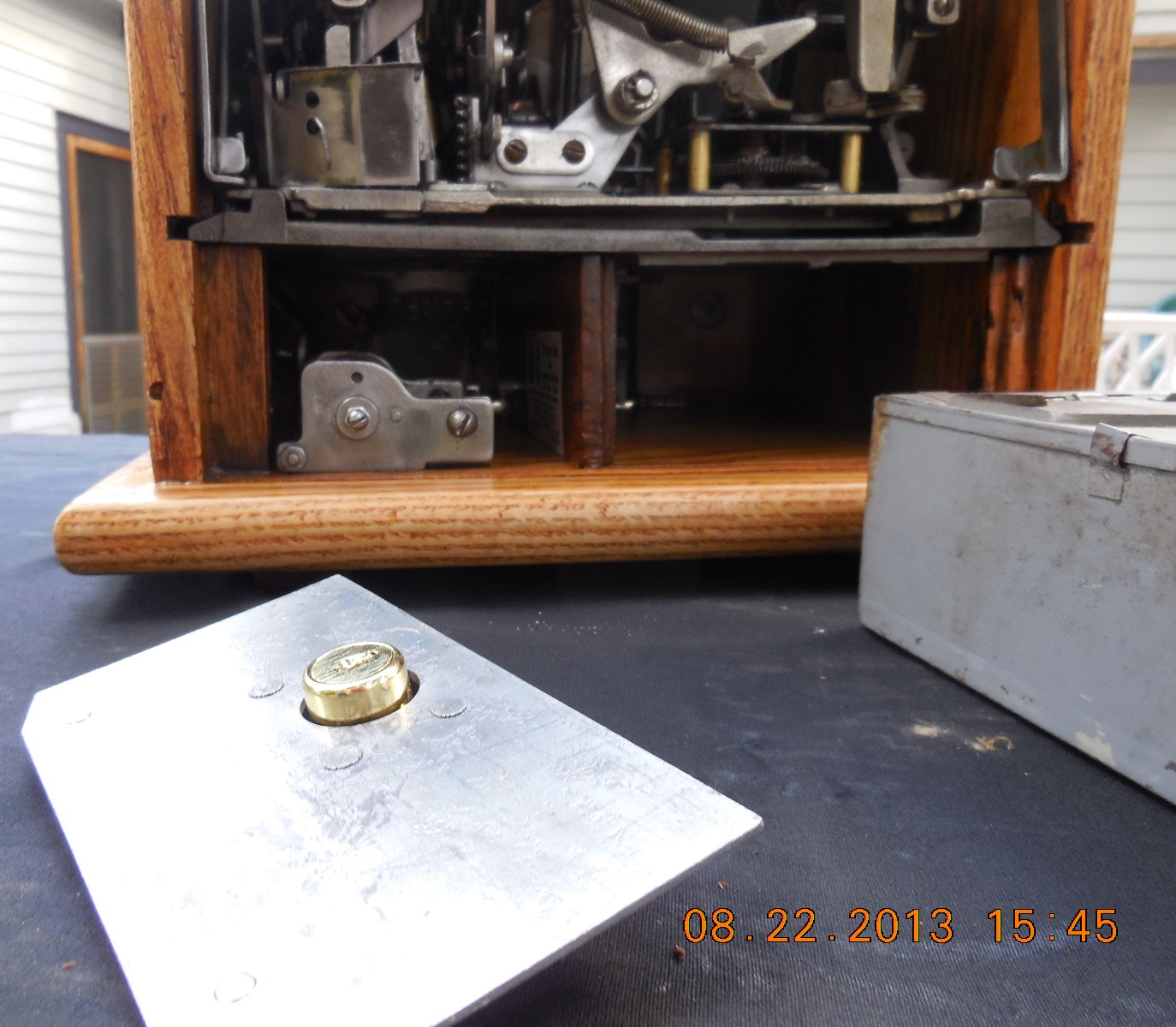 So hit the add to cart button. Shipping will be by Fed-x and insured, and at a flat rate which includes packing, insurance, Original back door and back bonnet and mills lock and key. No cracks or breaks anywhere on this machine.delivery and drop off to your door anywhere in the lower 48 states in the U.S.A. and the flat fee for all this is $169.00.