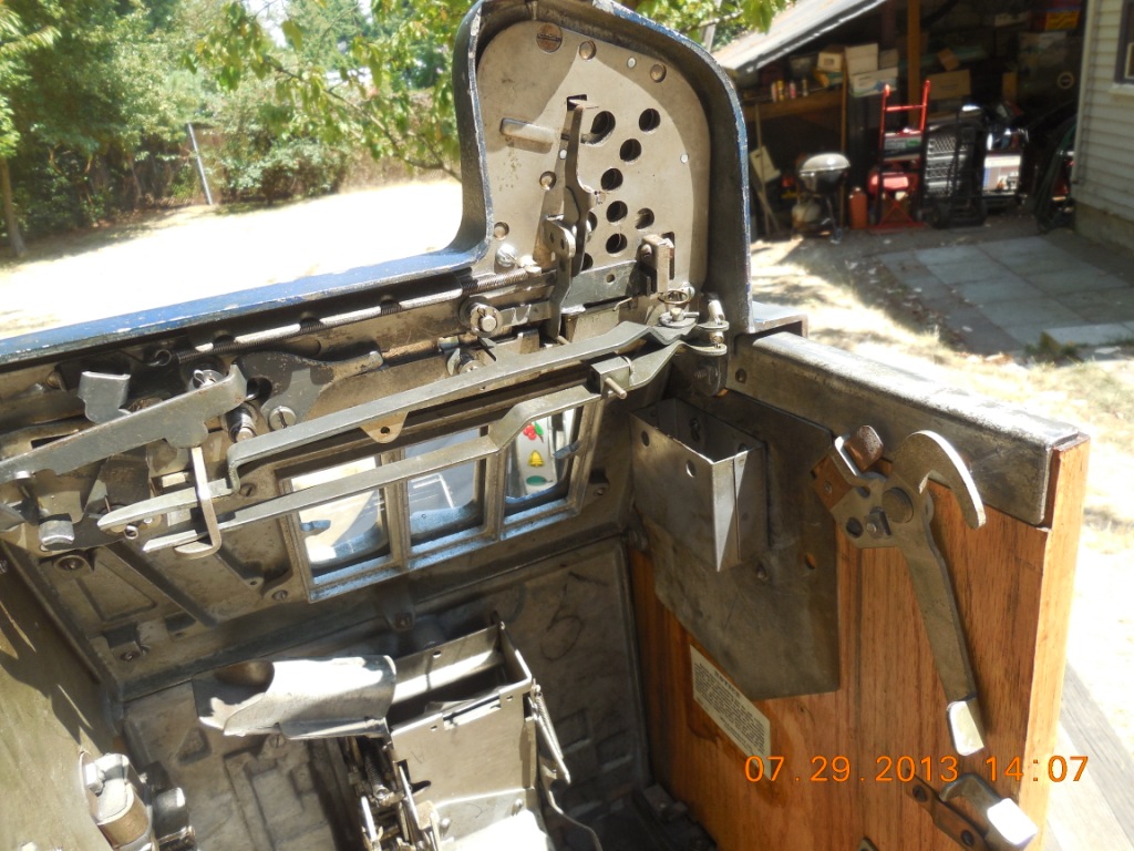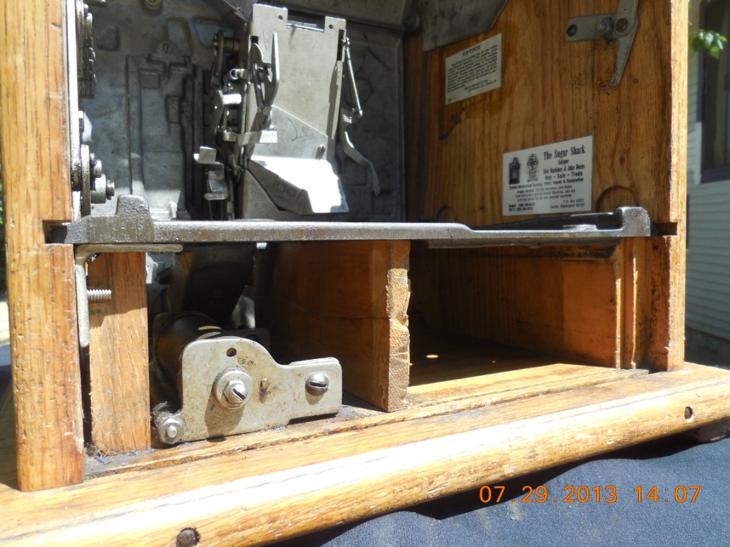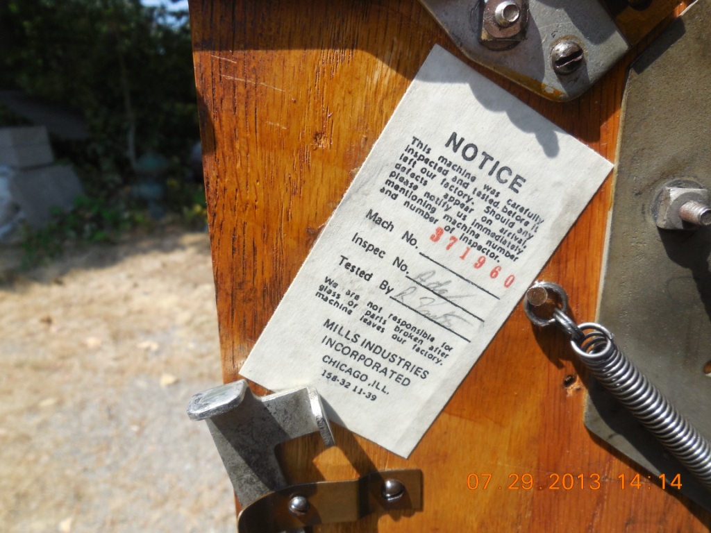 The serial number tags on the cabinet and attached to the mechanism are reproductions, they were reproduced to match the casted serial number